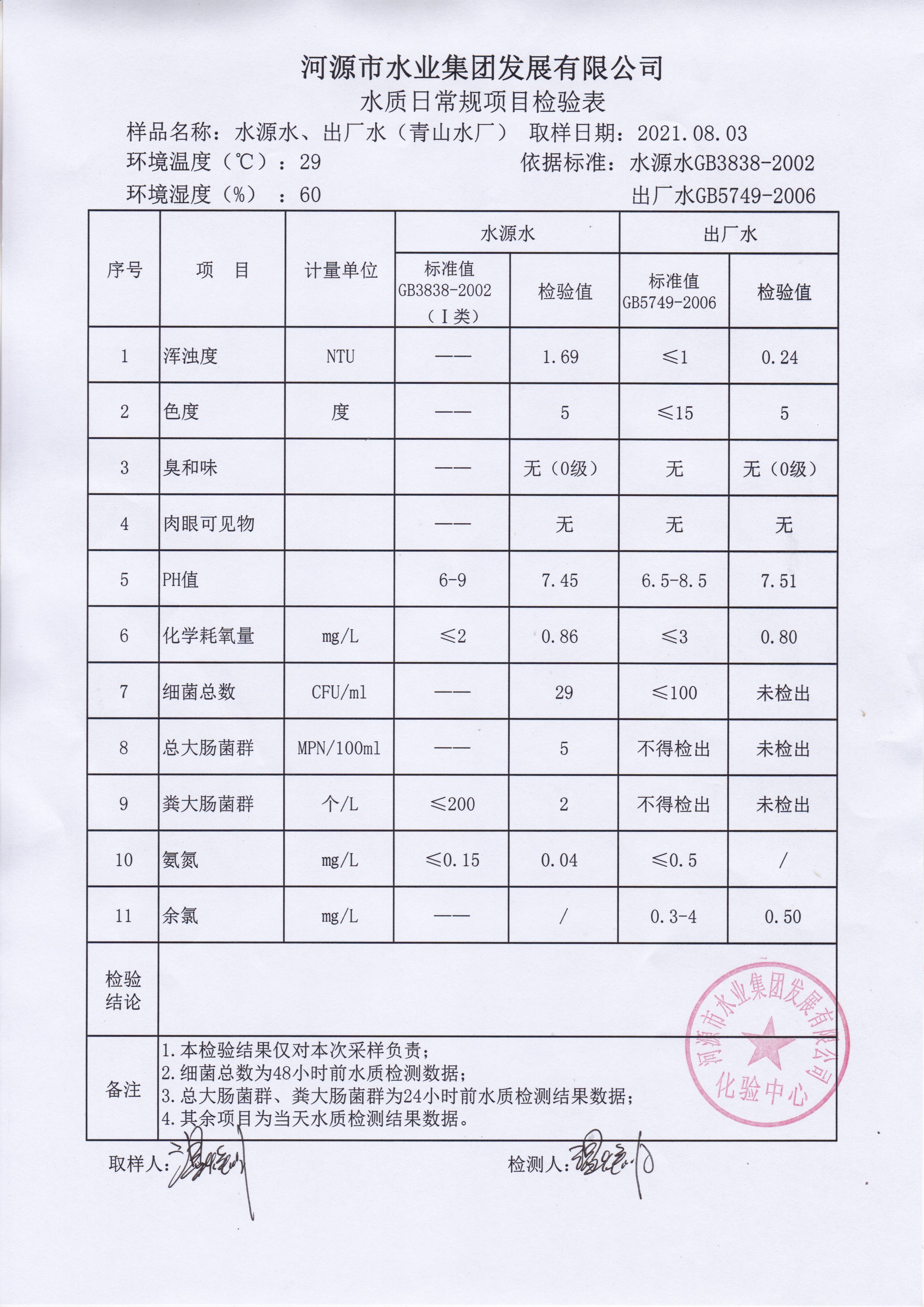 2021年8月3日水質(zhì)檢驗(yàn)報(bào)告 ????
