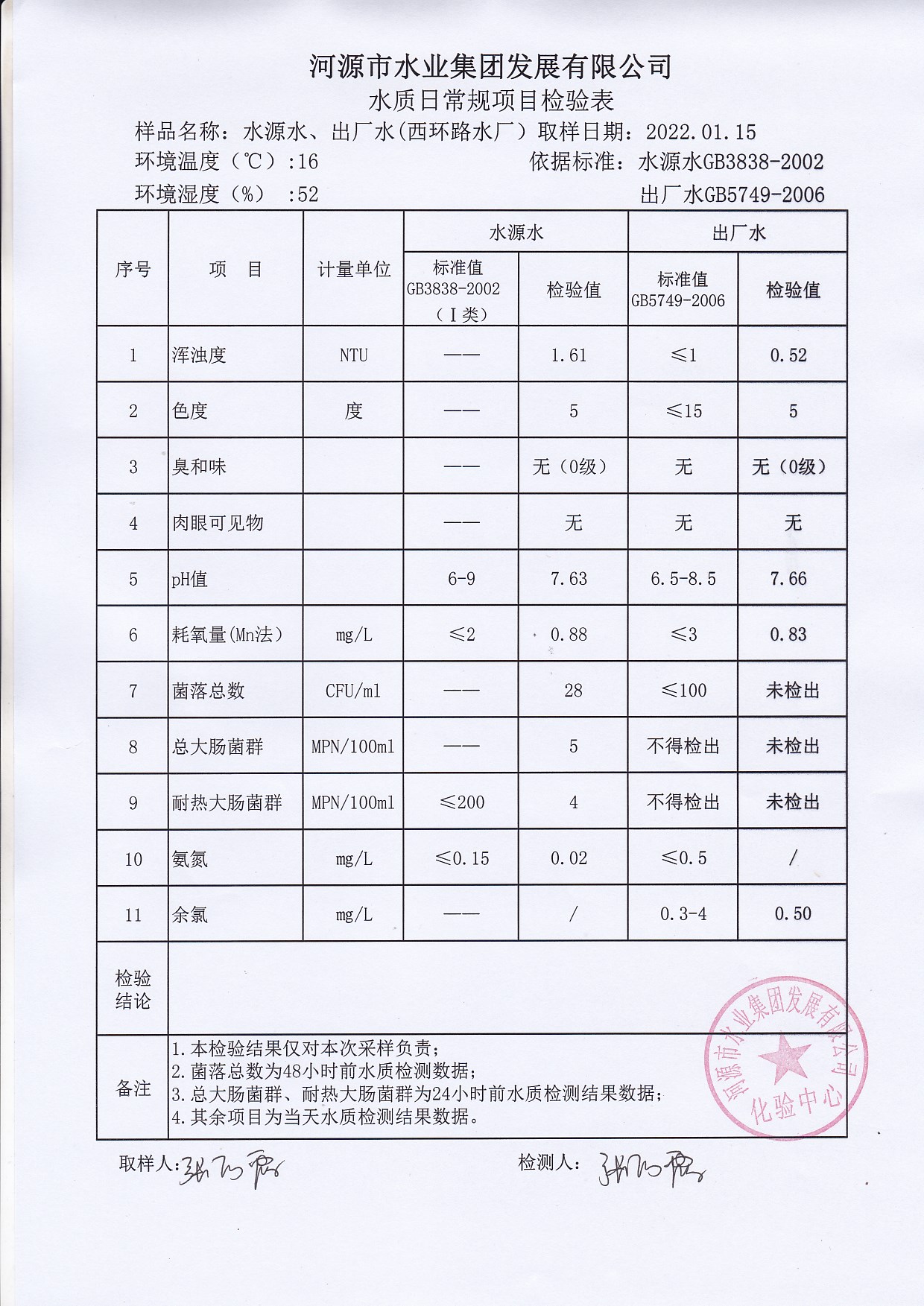 2022年1月15日水質(zhì)檢驗(yàn)報(bào)告 ????