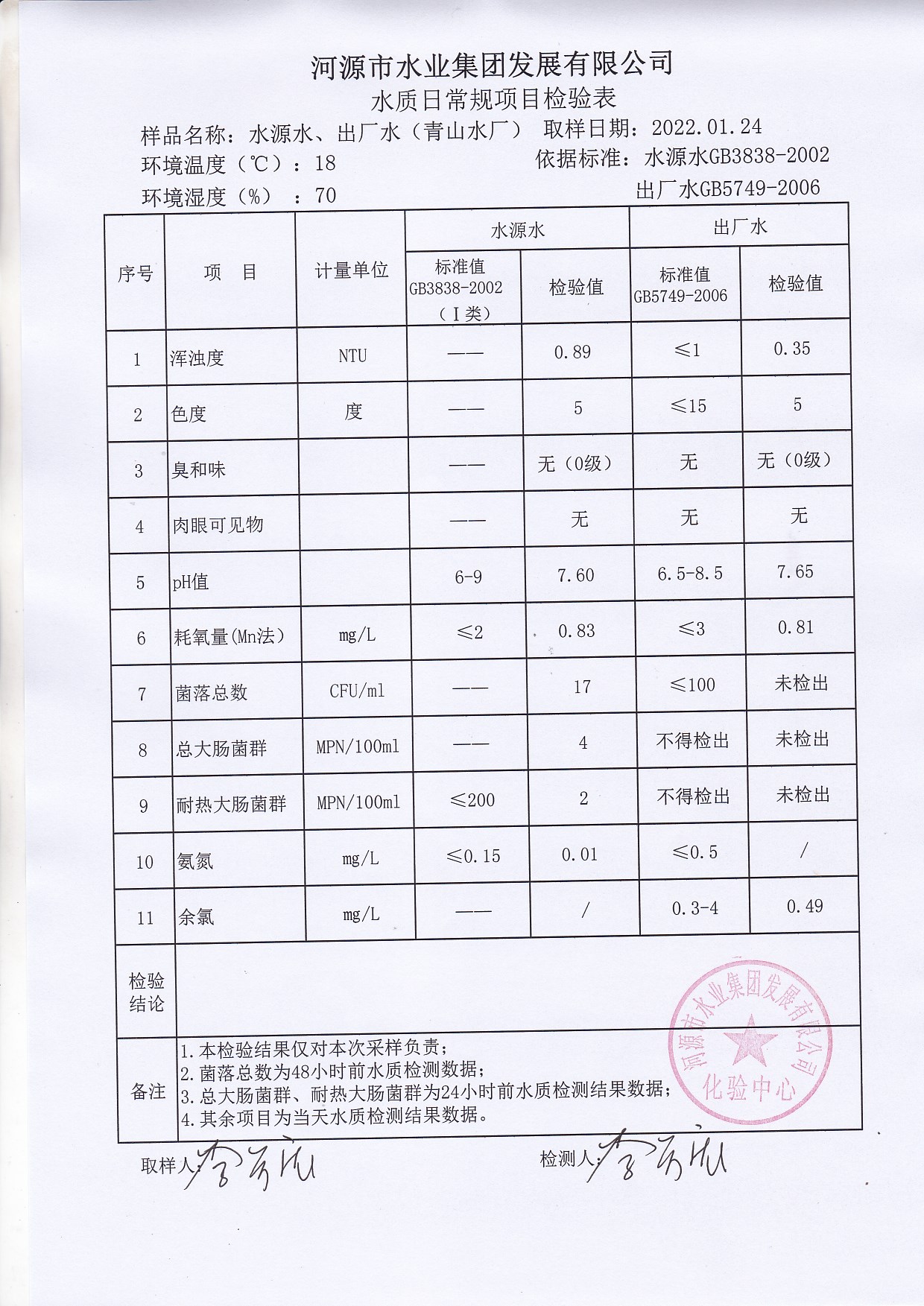 2022年1月24日水質(zhì)檢驗(yàn)報(bào)告 ????