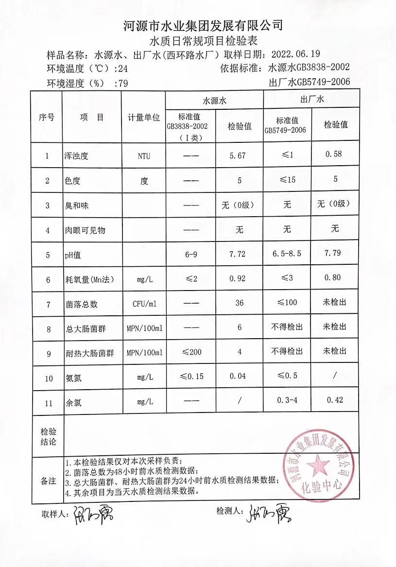 2022年6月19日水質(zhì)檢驗(yàn)報(bào)告 ????