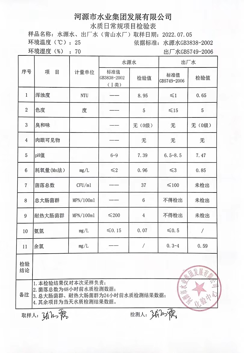 2022年7月5日水質(zhì)檢驗(yàn)報告