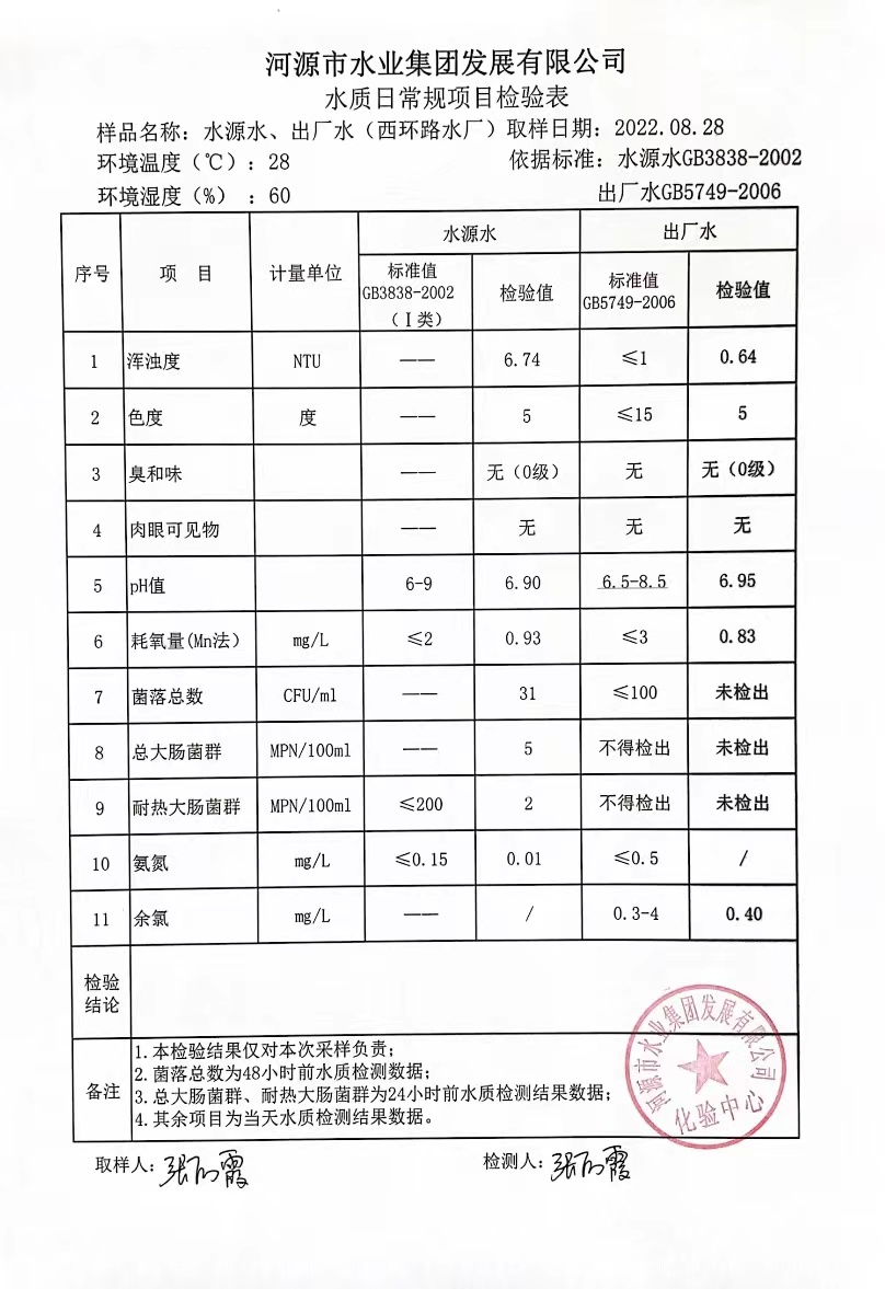 2022年8月28日水質(zhì)檢驗(yàn)報(bào)告 ????