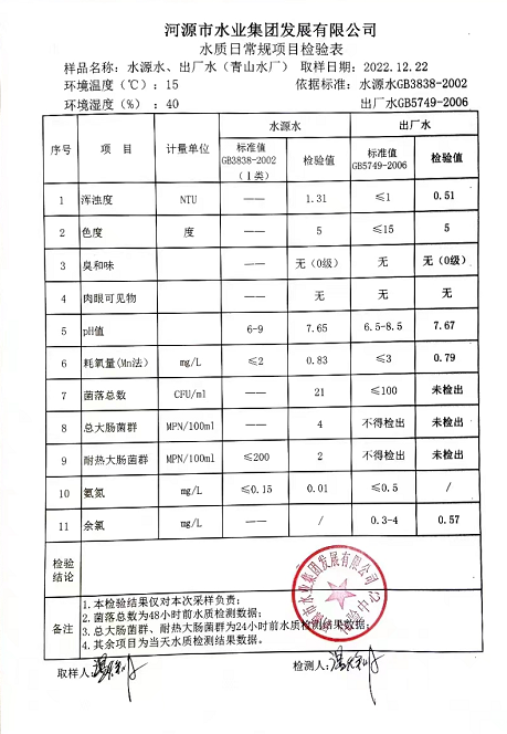 2022年12月22日水質(zhì)檢驗報告