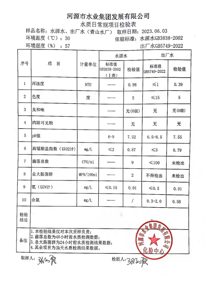2023年6月3日水質(zhì)檢驗報告