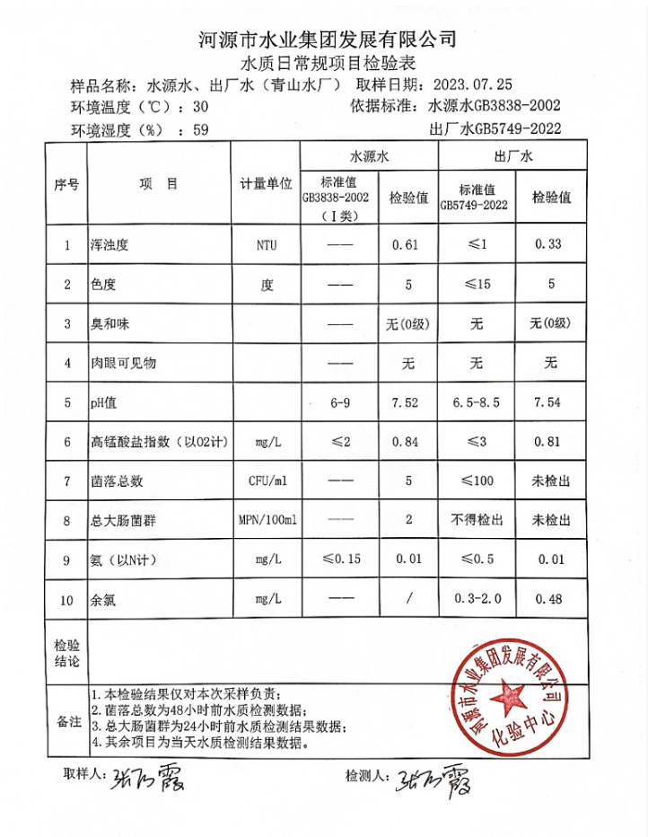 2023年7月25日水質(zhì)檢驗(yàn)報(bào)告