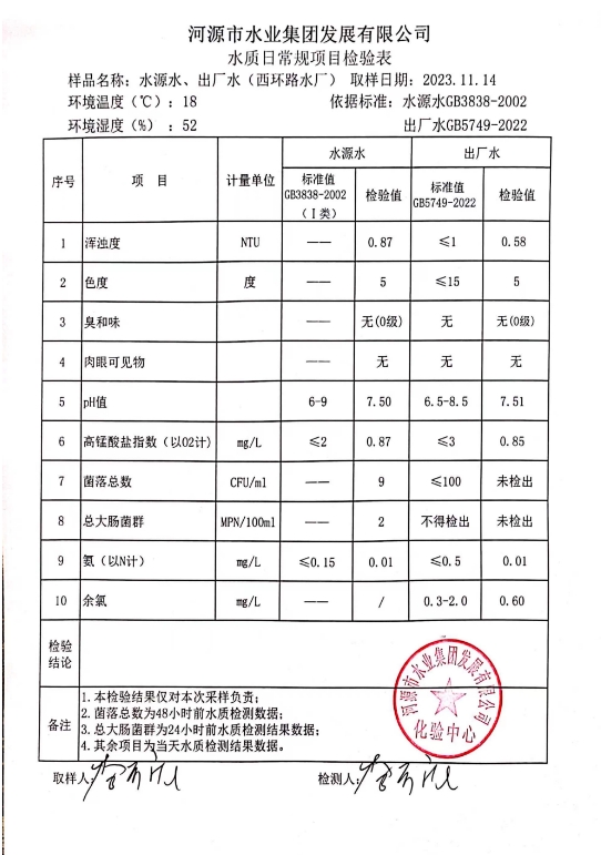 2023年11月14日水質(zhì)檢驗(yàn)報(bào)告 ???